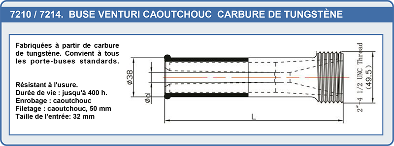 | 7214 | venturi caoutchouc Tungstène ø12.5 Lg: 230 mm | 119,30 € |