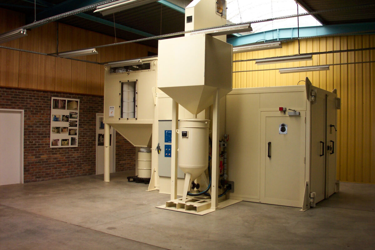 L’enceinte de sablage est une partie essentielle de la cabine. Elle assure la robustesse de l’installation et son isolation phonique.