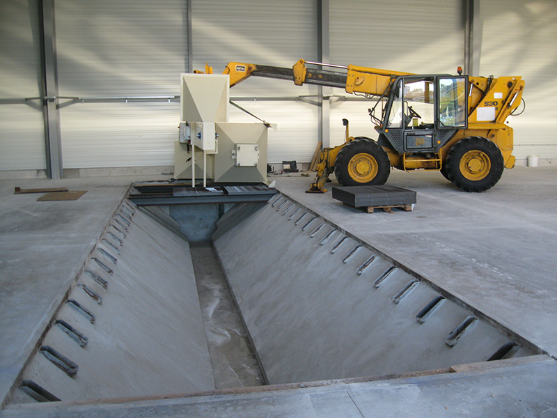 – totale avec une fosse en V avec couloir de récupération au fond de la fosse,
