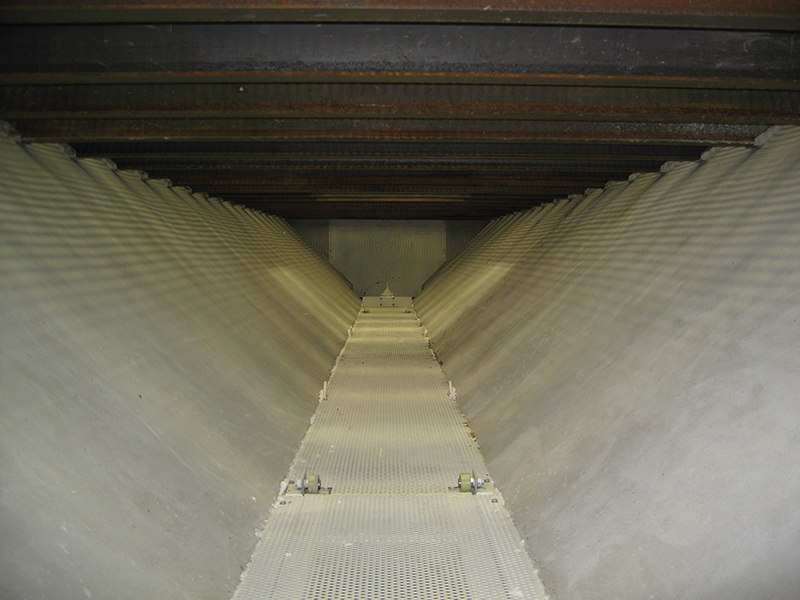 Notre couloir de récupération disposé sous le caillebotis dans le génie civil assure la récupération en continu de l’abrasif pour l’approvisionnement du groupe de remontée mécanique.