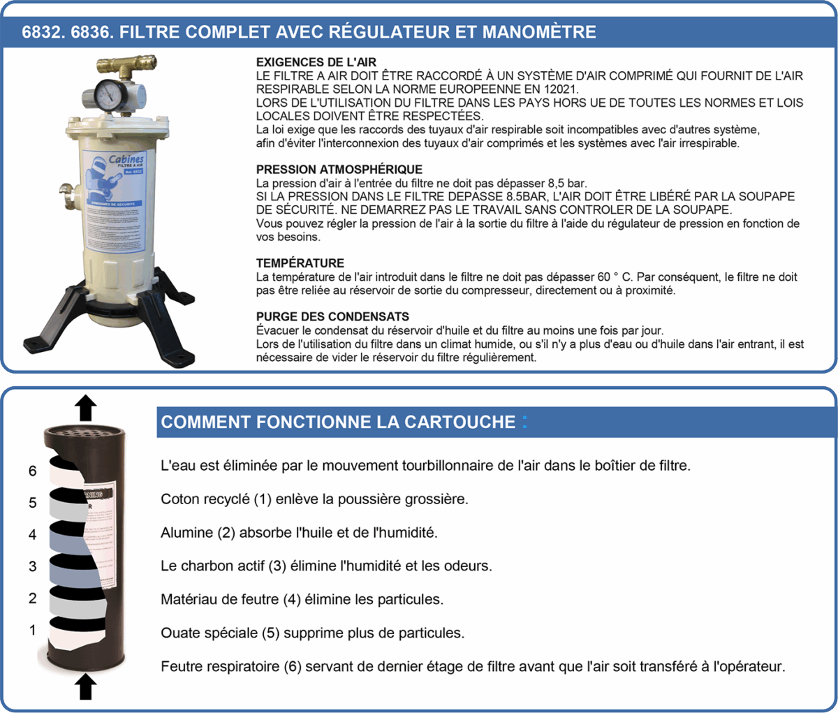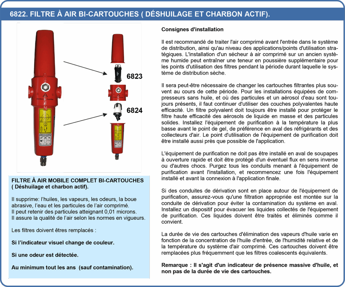 | 6822 | Filtre à air bi-cartouches sur support (régulateur. mano. 2 sorties) | 500,10 € |
