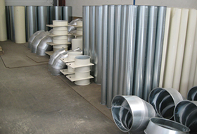 Gaines, conduits et accessoires de ventilation métalliques en acier galvanisé, avec extrémités conçues pour assemblage par brides ou colliers, qui compensent les éventuelles déformations des conduits et garantissent l’étanchéité du réseau. Caractéristiques : – Epaisseur 1,5 à 2mm en tôle d’acier galvanisé Z275 – Température d’utilisation continue : -30 °C à +100 °C – Température d’utilisation intermittente : -50 °C à 120 °C – Résistante au vieillissement et à l’abrasion